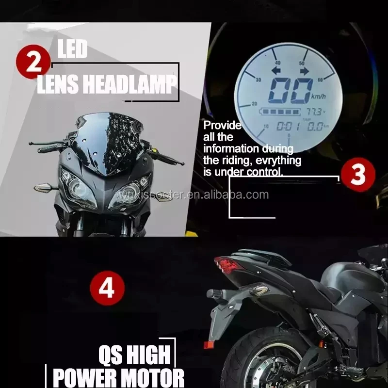 | MAX SPEED:110KM/H | FULL CHARGE DISTANCE:50-180KM | BRAKE:F&R: DISC | SLOPE:21° | FRAME:HIGH-TENSILE STEEL |