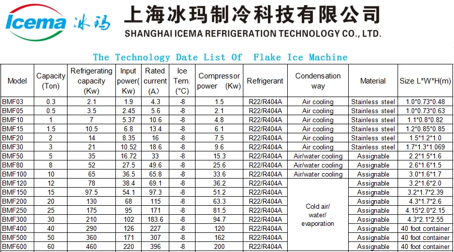 1. Flake Ice: Dry, pure, powderless, not easy to block, flake ice thickness is about 1.8mm~2.2mm, without edges or corners which will can product the cooling food, fish, seafood and other products.