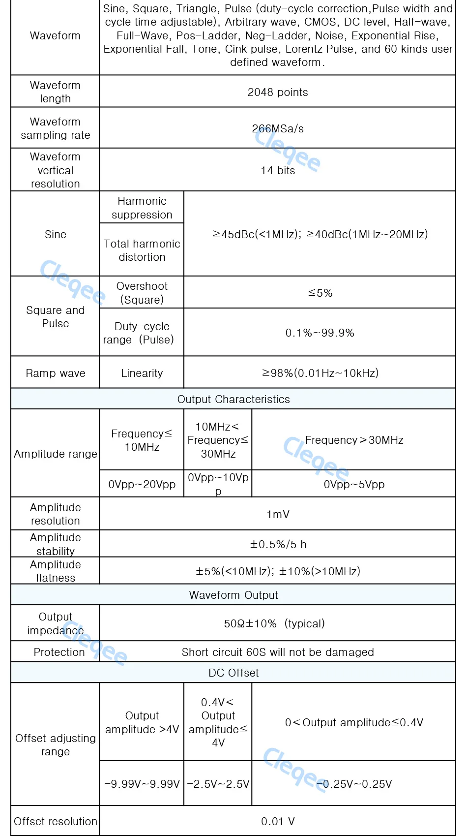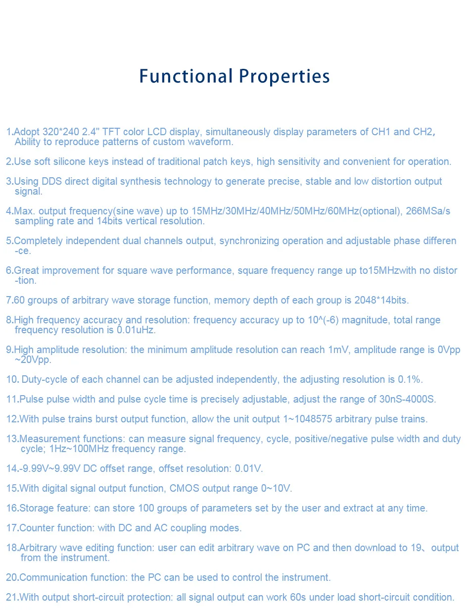 | Sine frequency range: | 0~60MHz; | Waveform sampling rate: | 266MSa/a; |