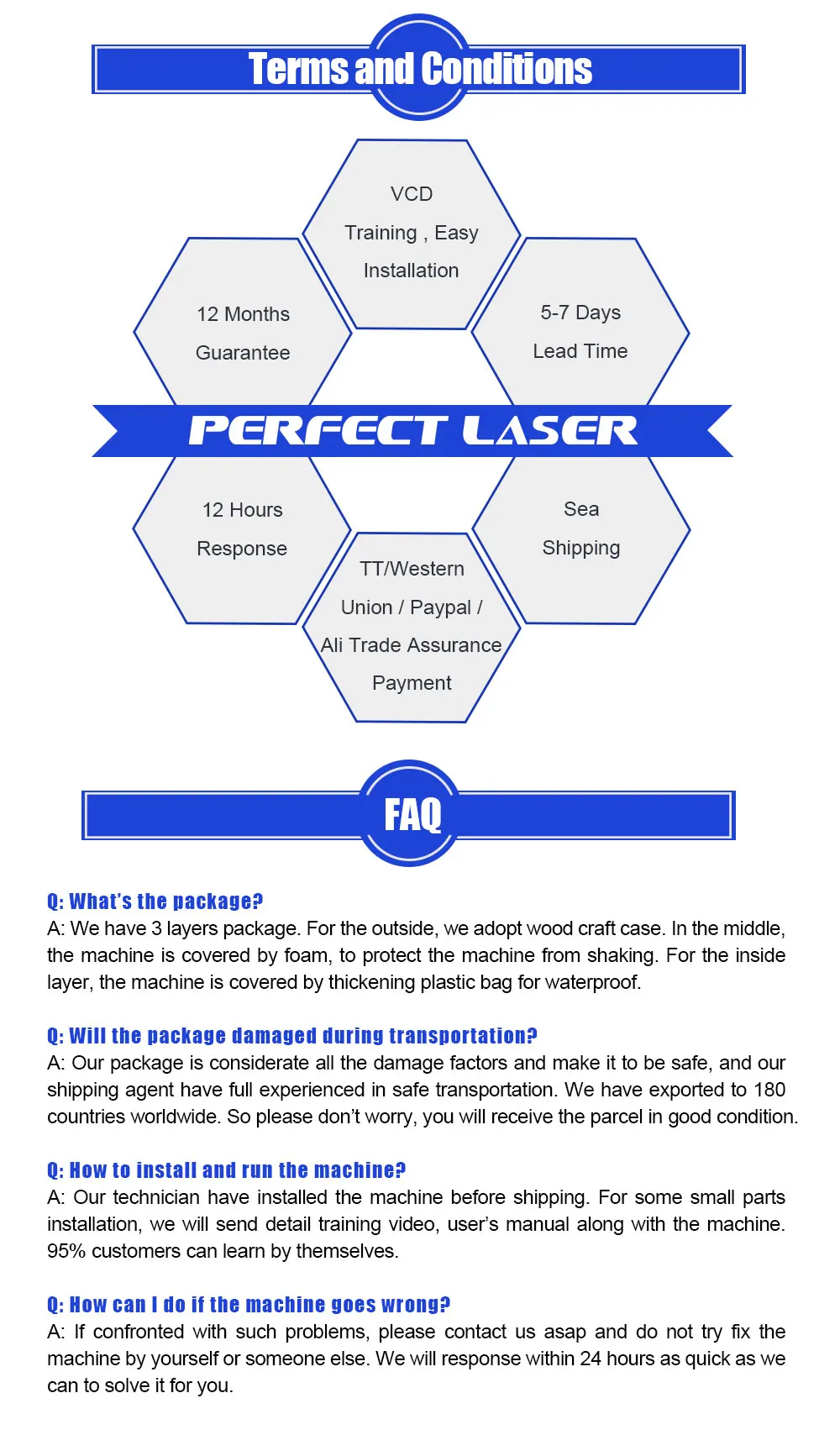 A: We have 3 layers package. For the outside, we adopt wood craft case. In the middle, the machine is covered by foam, to protect the machine from shaking. For the inside layer, the machine is covered by thickening plastic bag for waterproof.