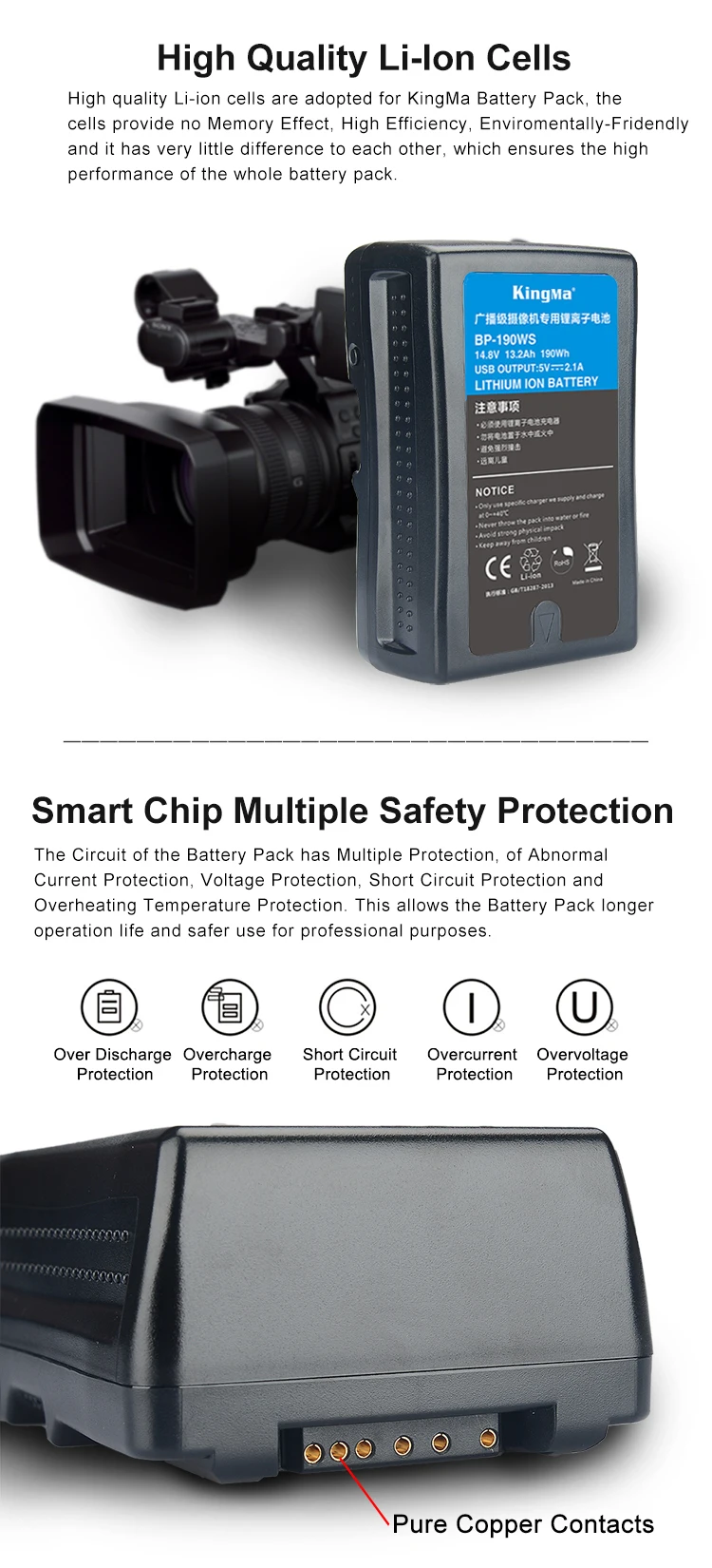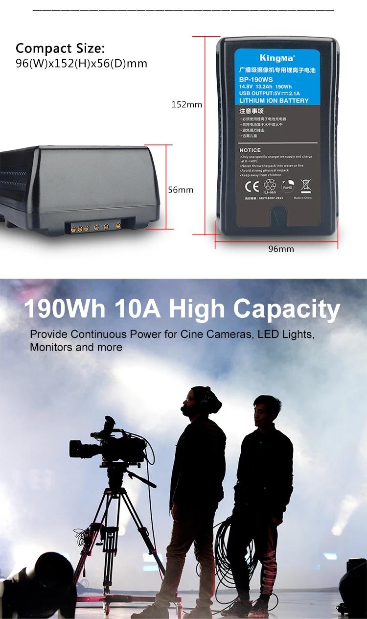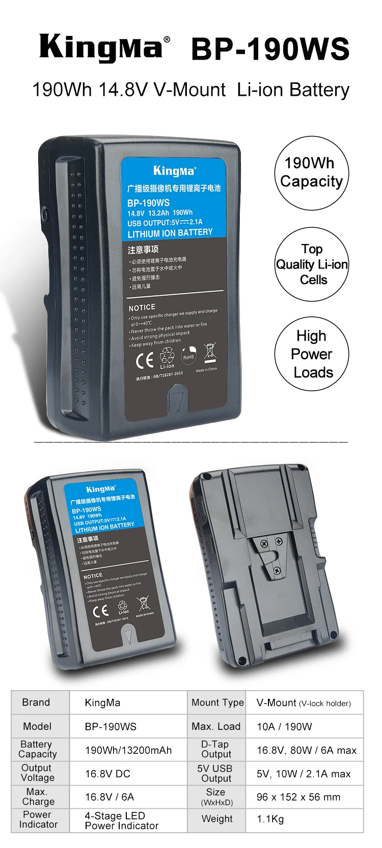 Kingma professional high capacity 13200mAh 190Wh V mount V Lock battery for Sony Camcorder Video Camera