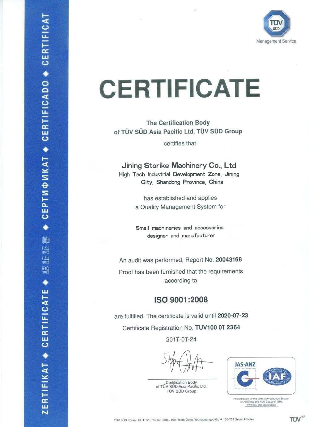 Jining Storike Engineering & Mechanism Co., Ltd is specialized in the sales and production of small road roller, compact ram, mobile lighting car, hydraulic power station, troweling machine and other construction machine. Our products are widely used in municipal and highway pavement road roller maintenance, small area compacting and depressed trough and so on. Our equipment is favored by many construction companies and have a large market in China. More and more trading companies purchase equipment from our plants, so we decide to enter world market with more favorable price to shape our product brand and provide the best after-sale service. If you are interested in our machine, contact us!