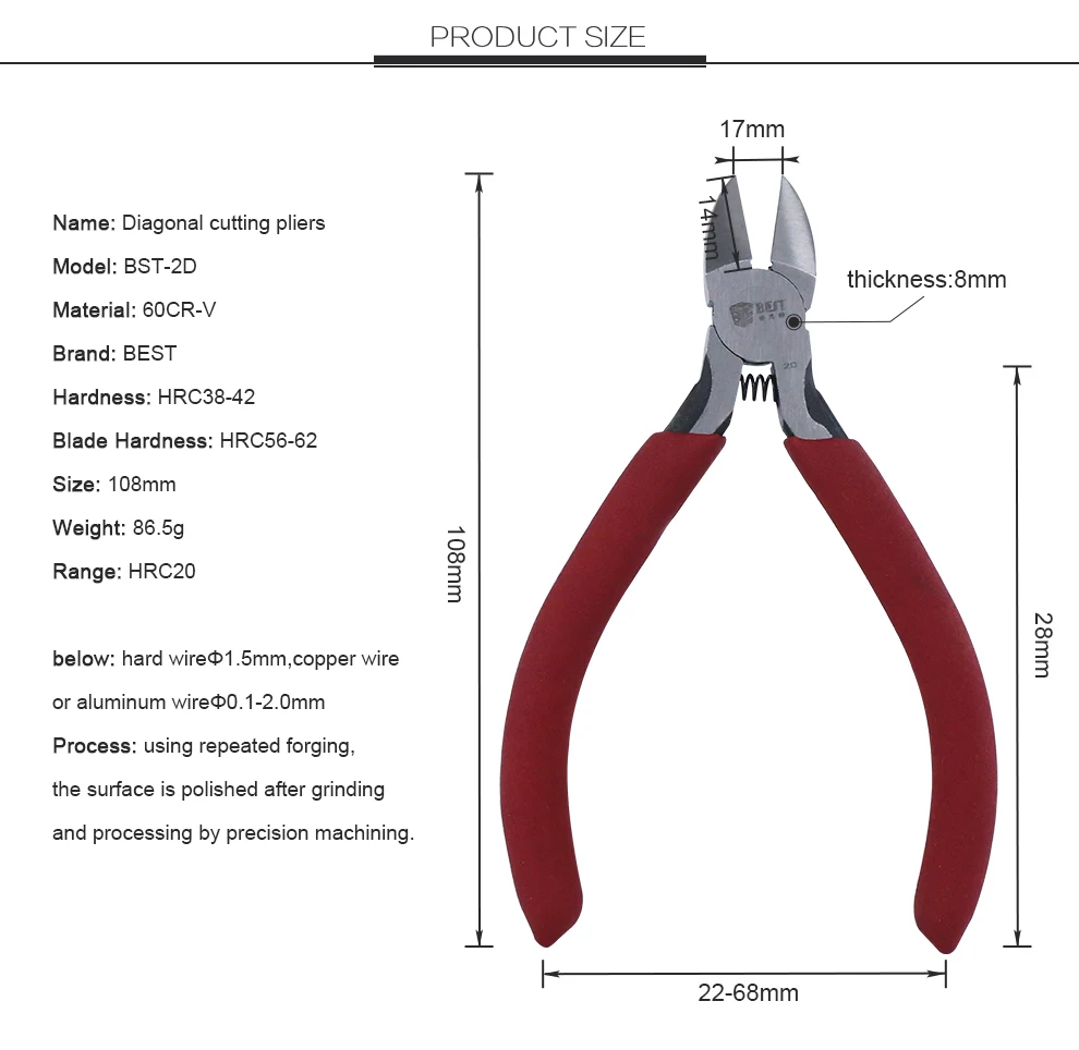BEST-2D Chrome Vanadium Steel Diagonal Cutting Pliers