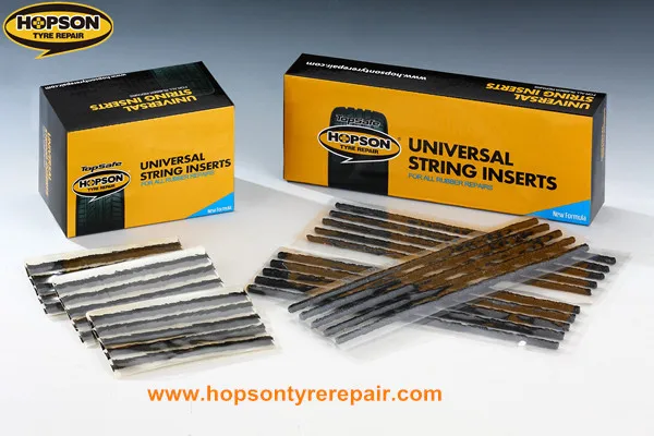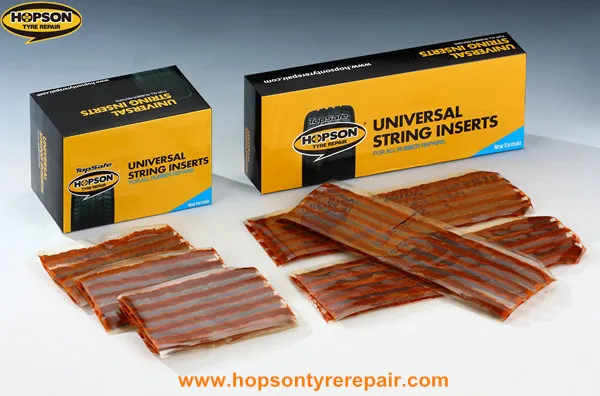 HOPSON Universal String Inserts can easy and fast repair small injuries in tubeless tires. Unique gray cushion gum flows into the injury and completely seals the innerliner as well as broken cord and cable ends. The insert permanently vulcanizes to the tire, and the tire is immediately ready for use. Flow-Seal inserts are ideal for use in both bias and steel belted radial tires. These inserts are designed for demounted tires and are also excellent repairs when used in any retread process. They can be used to fill an injury and are very effective when backed up with the appropriate repair unit. Note: Industry stands state that the tire should be demounted and repaired from the inside using inserts and appopriate repair unit on the innerliner.