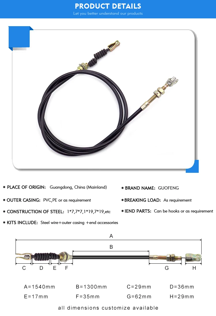 Of course ,we have to know your application firstly and a number of factors have to be considered, such as work load, safety abrasion, environment ,cycle life, flexibility, cost, When we design the brake control cable .