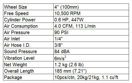 | keyword 3: | pneumatic air angle grinder tools; | WHEEL SIZE: | 4''; |