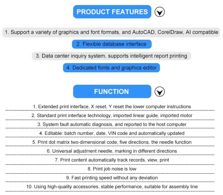 Marking Speed | straight line:80mm/second | Print pin impact frequency | 300-500 times / second |