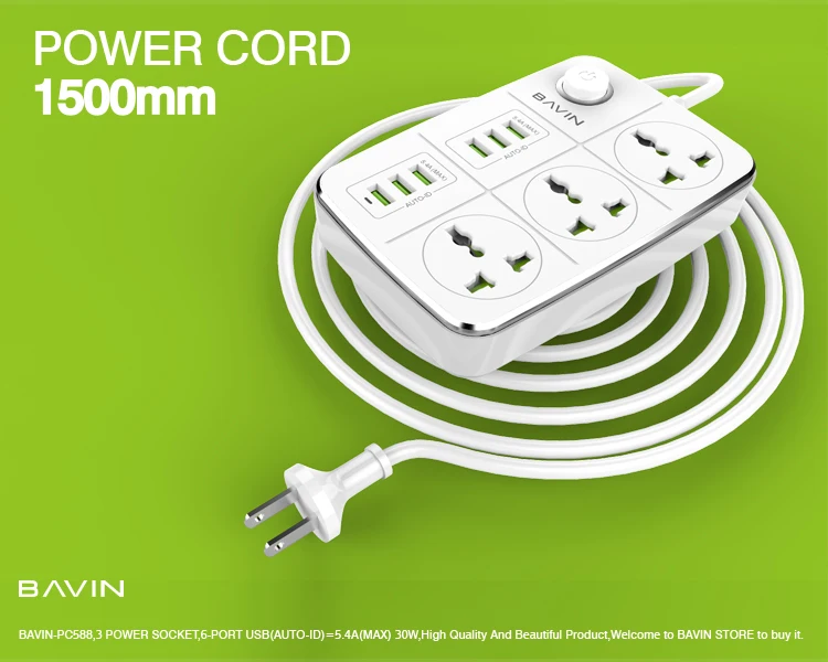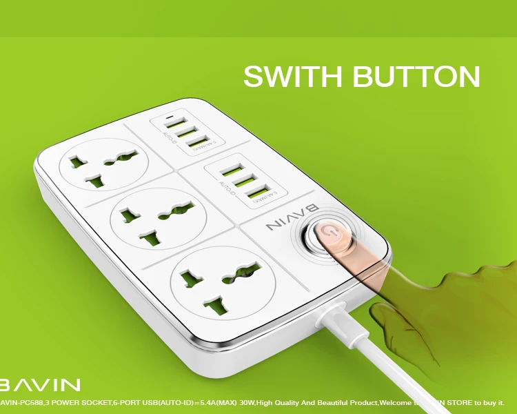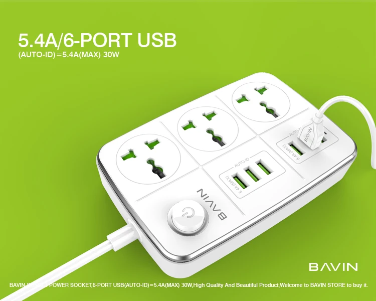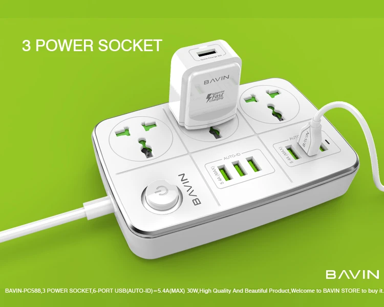 BAVIN PC588 6USB 3 Power socket 5.4A 30W MAX microphone electrical switch pop socket