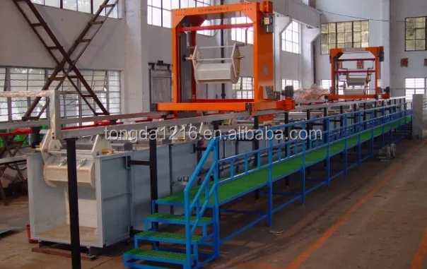 Hanging plating is a process in which the workpiece is clamped on the hanger, suitable for large parts, and the number of products that can be plated in each batch is small, and the plating thickness is 10 μm or more. The hanging plating line can be divided into manual lines (portable, hand-push), automatic lines (semi-automatic, fully automatic).