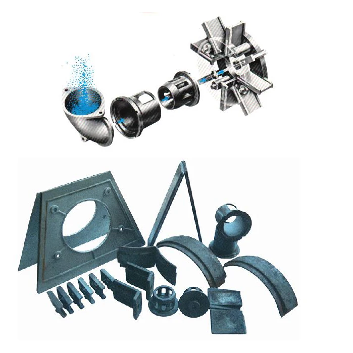The abrasive blasting impeller, blast wheel, turbine, abrator is the most important part of the shot blasting machine, where it is rotate by the motor. Abrasive particles are projected by centrifugal force from various kinds of turbine wheels. The number of wheels installed in the machine depends on the type of jobs to be shot blasted and the rate of work. The wheel is the heart of every centrifugal shot-blasting machine. Efficiency and cleaning effect depend to a great extent on the quality of the wheel and its components.