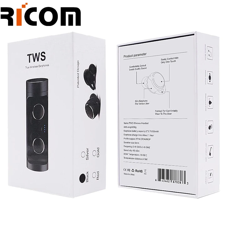 | Product name: | IPX6 TWS True Wireless earphone earbuds 5.0; | Place of Origin: | Guangdong China (Mainland); |
