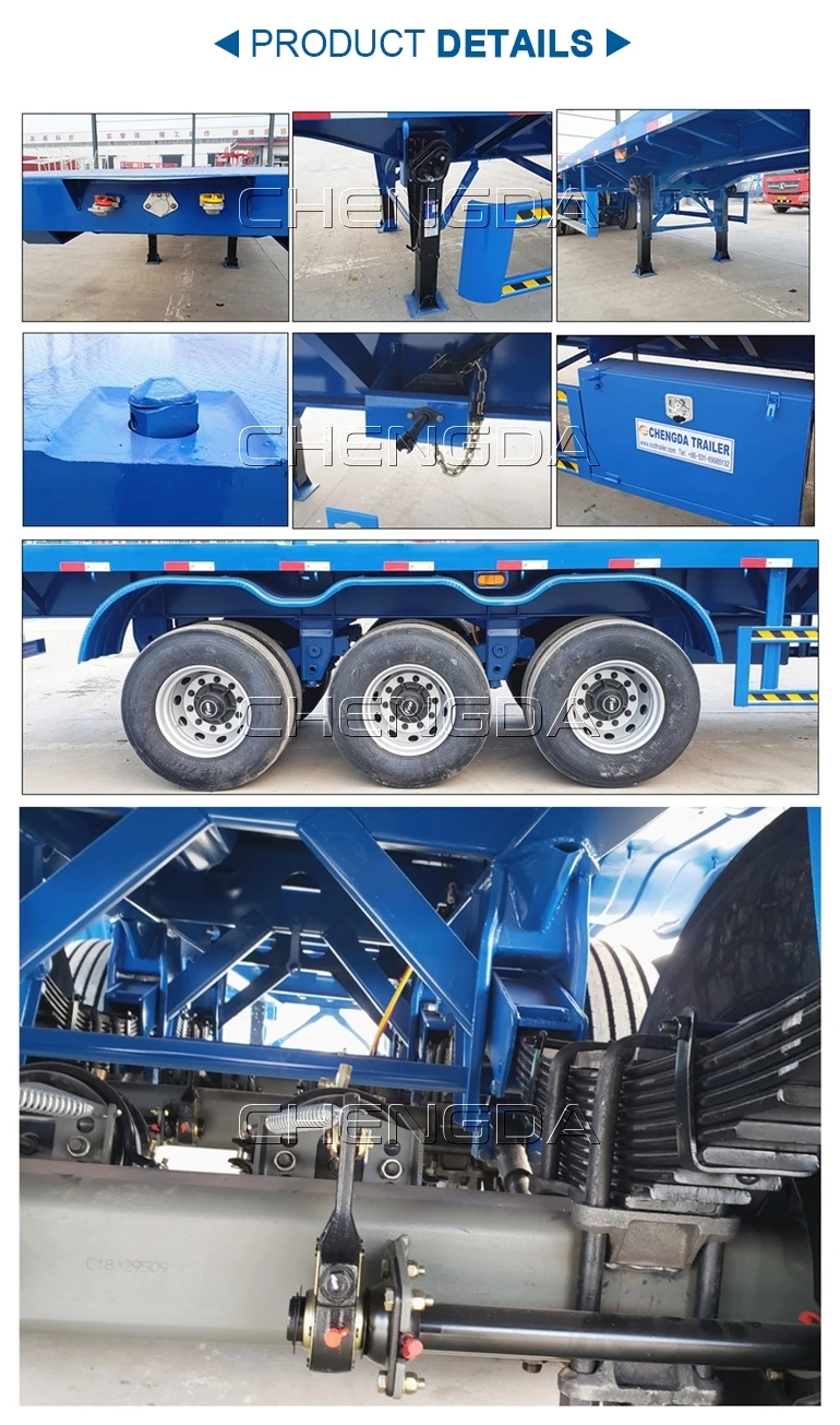 Details Pictures for Best price Factory Sale 2 axle s Tri-axle 20ft 40 feet 40ton container semi flat bed flatbed trailer with container lock