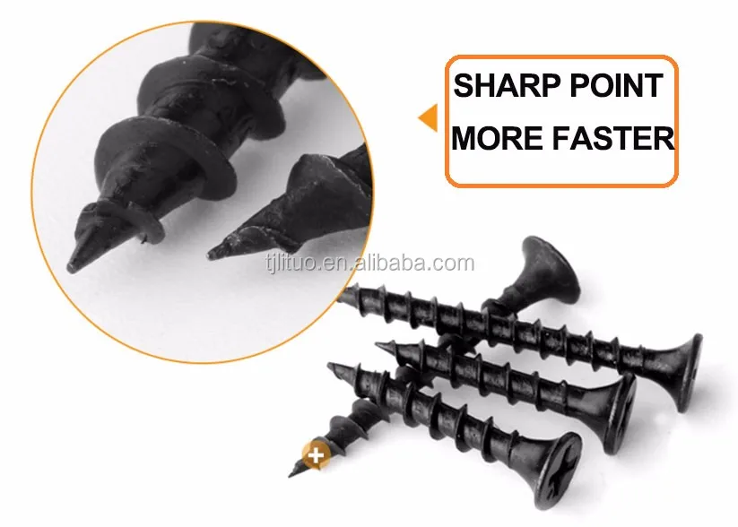 Tianjin China screw manufacturer 3.5x25 black tornillo drywall screw bugle head drywall screw black phosphate application: