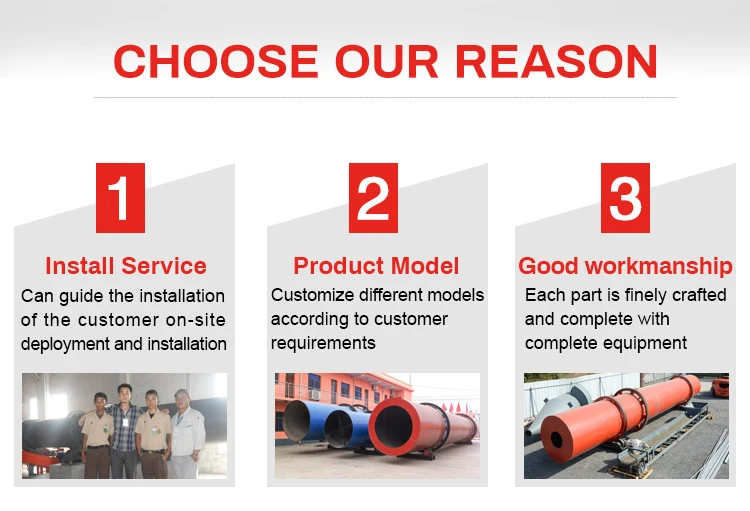 Finally, the dried material is discharged from the discharge port.The temperature generated by the heat source enters the long refractory lining chamber to maintain a low temperature. Adding auxiliary air to the chamber to maintain a lower temperature level.