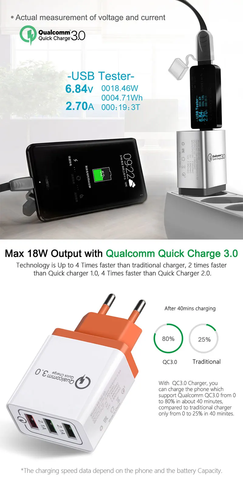 | QC3.0 Output: | 5V 2.4A / 9V 1.8A / 12V 1.5A; | Type: | Electric; |