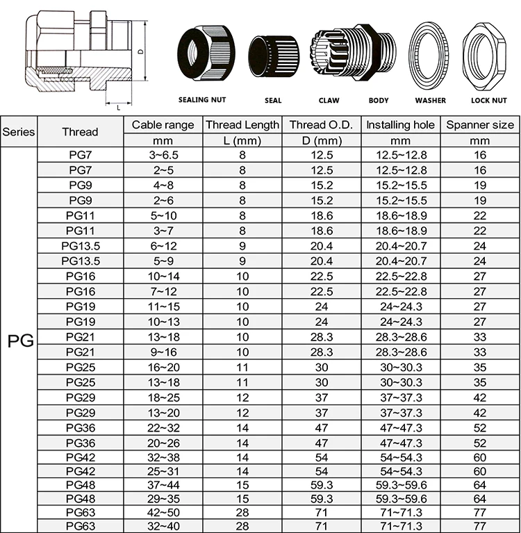 | Port: | Ningbo or Shanghai or Guanghzou; | Size: | PG7~PG63; |