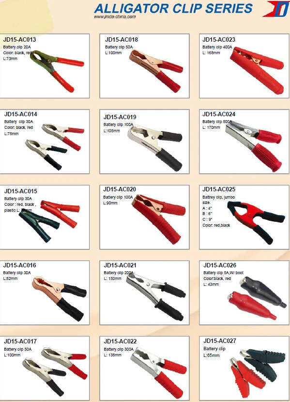 | Packaging Detail: | 1,polybag 2,blister packing for 5A 10A 20A 25A 30A 50A alligator clamp; | Payment Terms: | L/C,D/A,D/P,T/T,Western Union,MoneyGram,paypal; |