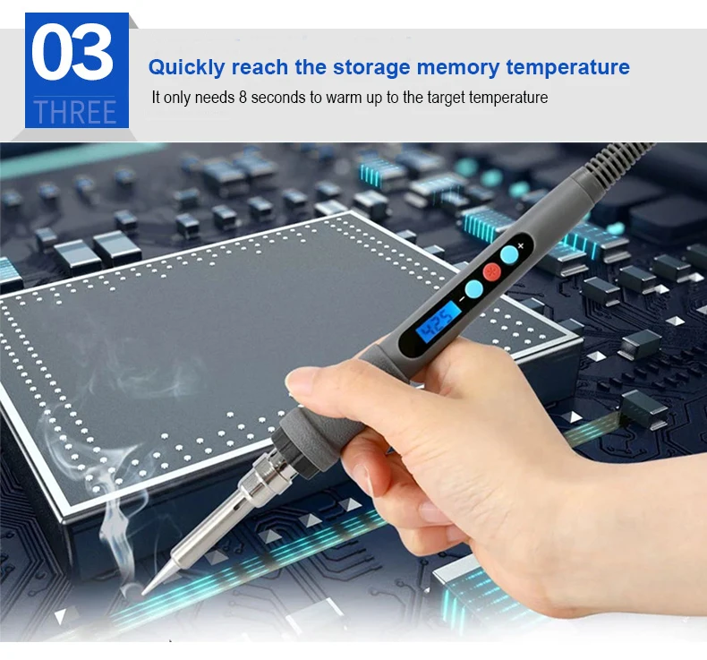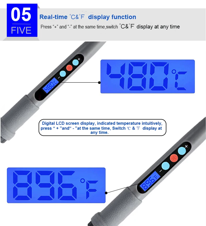 4. After required temperature showing up in LCD screen, please wait for a little while for heating up pen’s tip. Then go on with your DIY project, you’ll get best results.