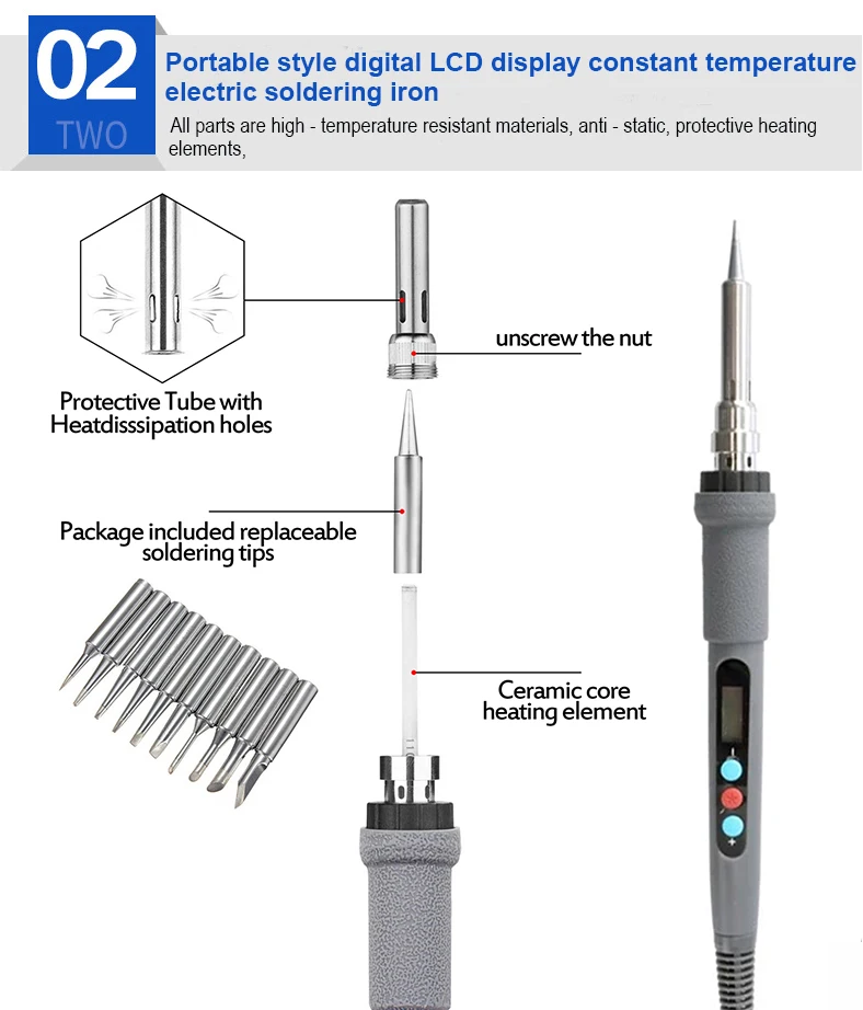 3. Tips(Points) are likely oxidized to black. Using emery to clean it firstly, then turning on power for heating, putting on tin immediately, you can clean the oxide.