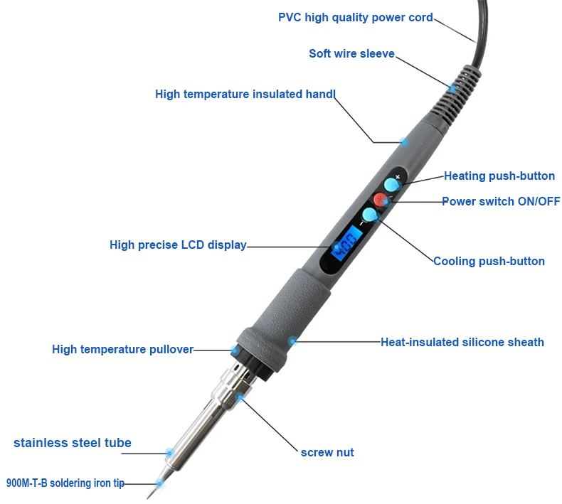 | Package Type: | PACKAGE SPECIFICATION: 1 x 110V/220V 60W Digital Display Constant Temperature Electric Soldering Iron 28 x Embossing/Carving/Soldering Tips 5 x Lead Free Extra Different Soldering Tips( 900M series) 1 x 0.8/1mm Solder Wire 2 x Anti-Static Tweezers 1 x Solder Sucker 1 x Cleaning Sponge 1 x Soldering Iron Stand 1 x User Manual; | Output Power: | 60W; |