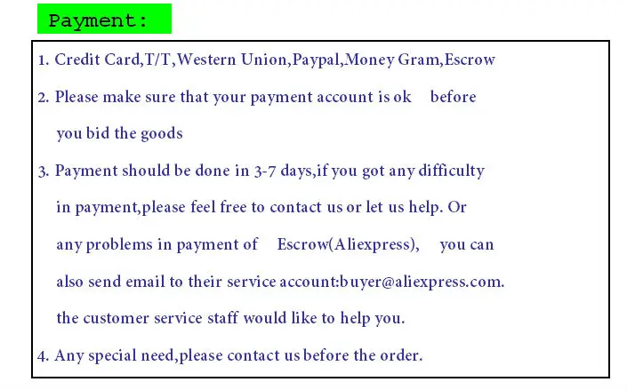 If you find any problem with the goods within 7 days since you get them, you could return the goods to us and we will resend a good new one to you after we receive the goods.