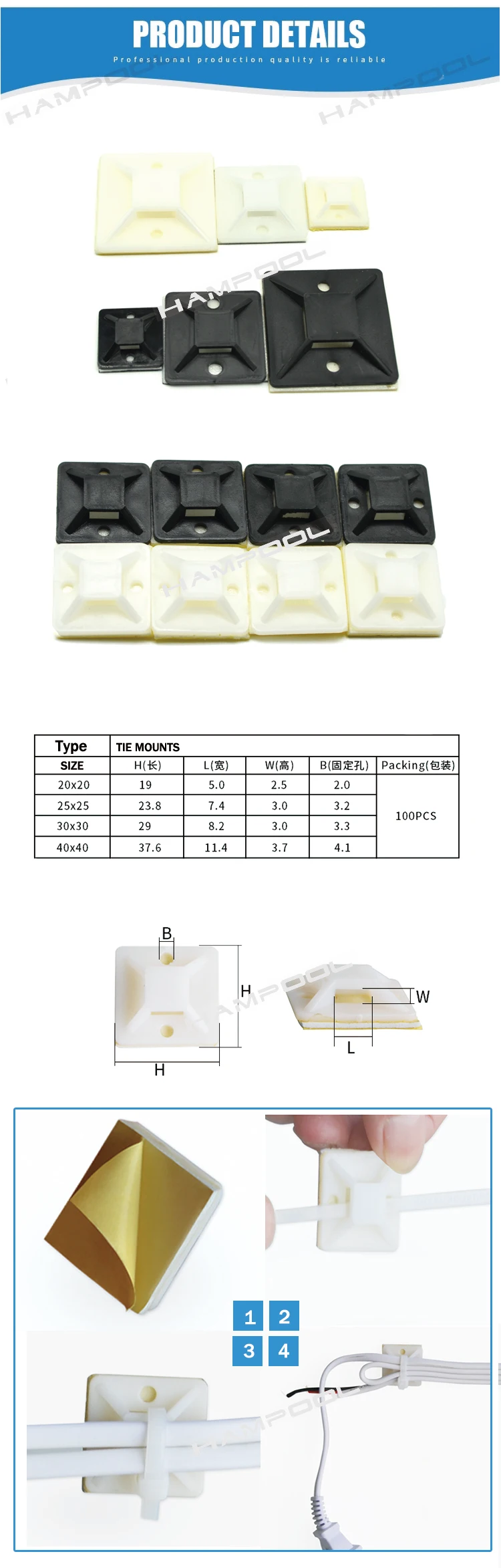 | Brand Name: | Hampool; | Usage: | Peel the spone glue and stick on the wall bundle the wire with tie; |