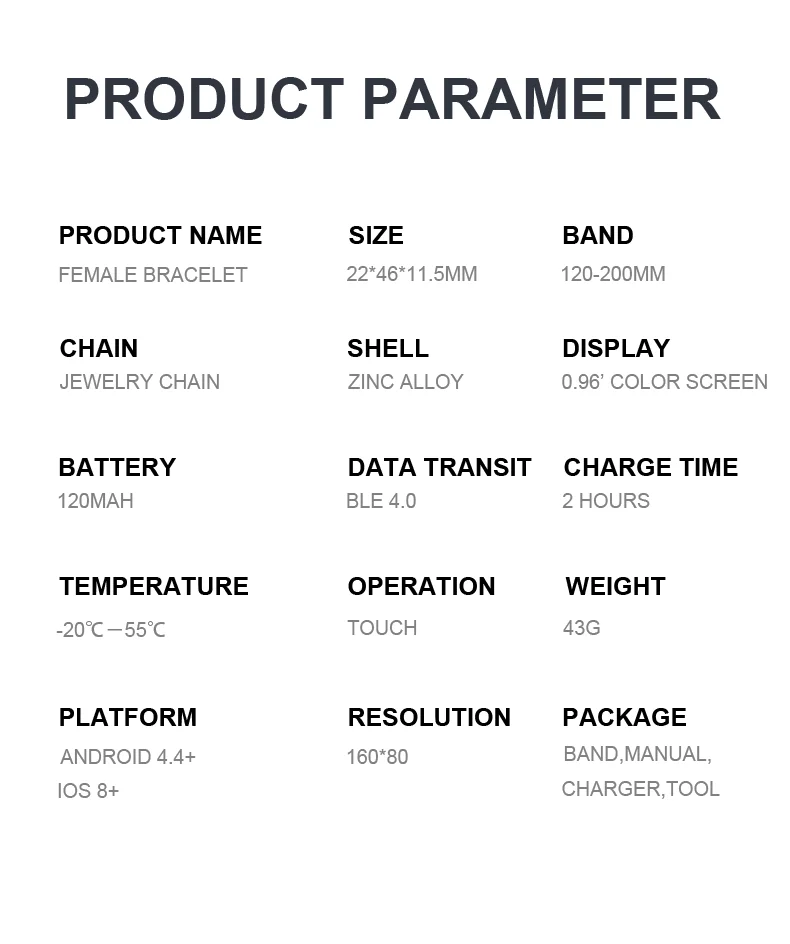 | Color: | Rose Gold, sliver,Black; | Screen: | 0.96in IPS high-definition color screen; |
