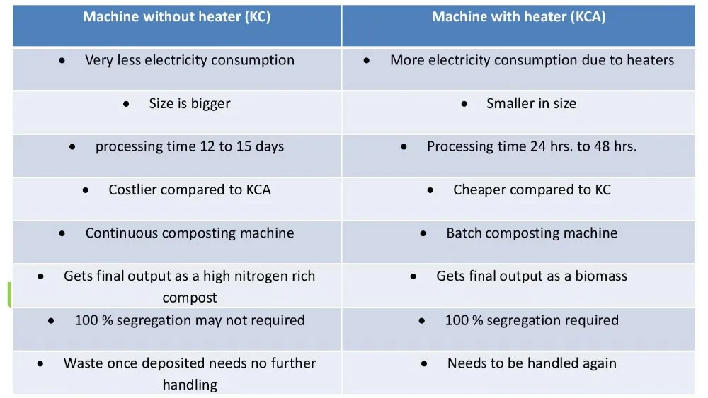• We have KCE machine with waste processing capacity ranging from 30kg – 5ton per day.