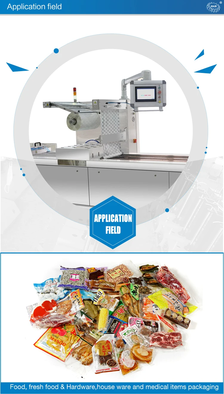 Vacuum packing type is a new fashion packaging way at present. Our vacuum sealing machine works from film thermoforming , filling, vacuum pumping,sealing to cutting.