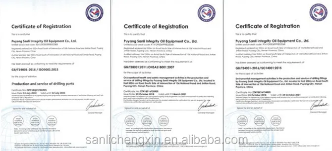 All our products have passed the API 10D certification,also we have the certification of ISO 9001 and ISO 14001, etc..