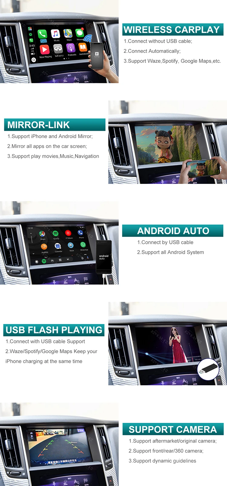 | Functions | Wireless Carplay,Android Auto,Mirror-link,Touch Screen |