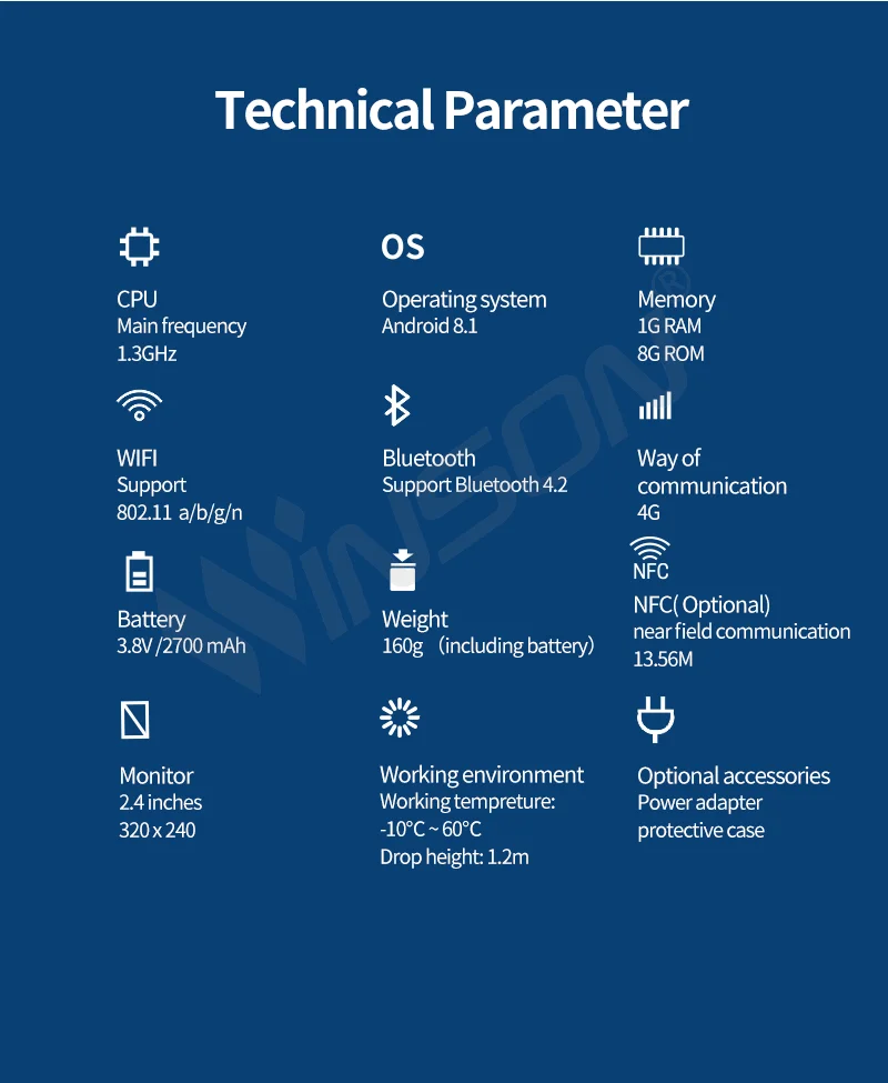 | Single package size: | 17X10.5X6 cm; | Product type: | Wireless Handheld Terminal; |