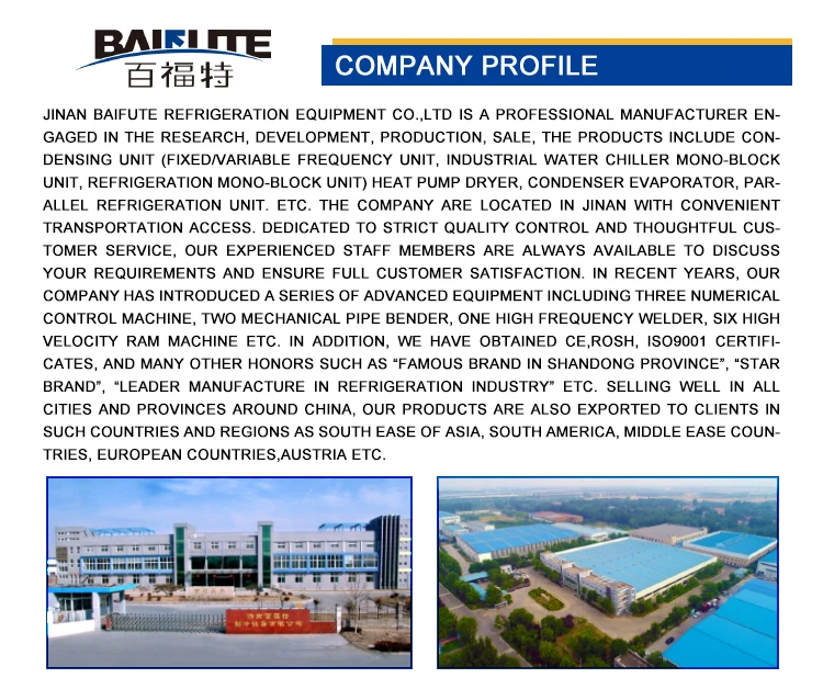 Baifute refrigeration equipment factory semi hermetic bitzer refcomp piston screw compressor condensing units