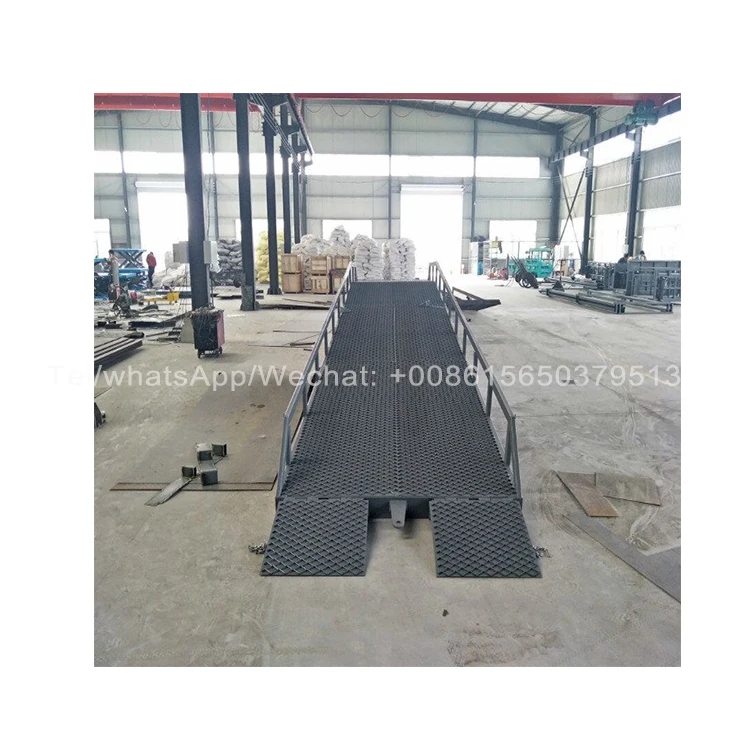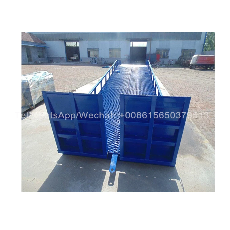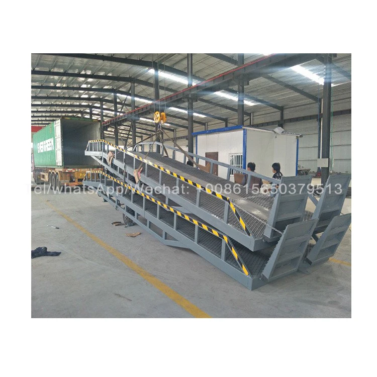 The mobile boarding bridge is a cargo loading and unloading auxiliary device used in conjunction with the forklift truck. The height can be adjusted according to the height of the car compartment. The forklift truck can directly enter the interior of the car through the equipment to carry out bulk loading and unloading of the cargo, which can be realized by only one person. Fast loading and unloading of goods. It enables companies to reduce a lot of labor, improve work efficiency, and obtain greater economic benefits.