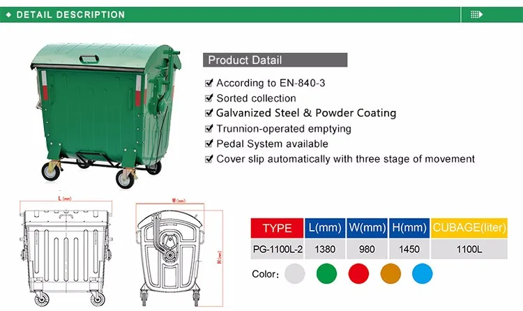 PG-1100L-1 hot dip galvanization waste container PG-1100L-2 powder coating waste container