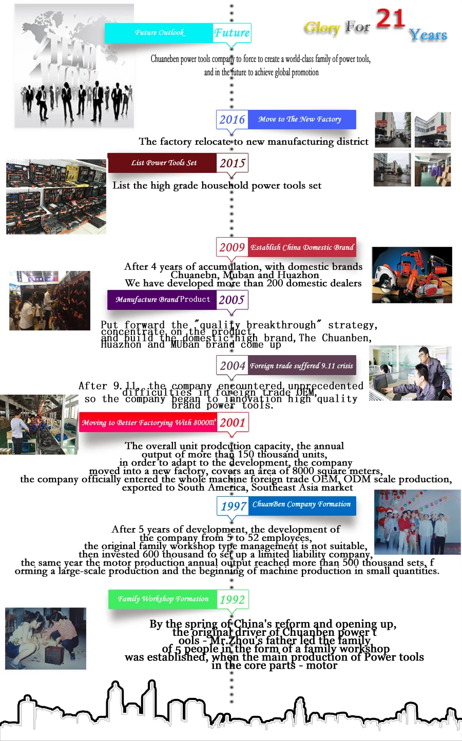 For 21 years, chuanben power tool have been sold all over the world, particularly in Southeast and South America market,We have established long-term cooperation with the agencies all over the world. Under the principle of self-reliance, innovation, pioneering work hard, we hope to create wonderful tomorrow with you!