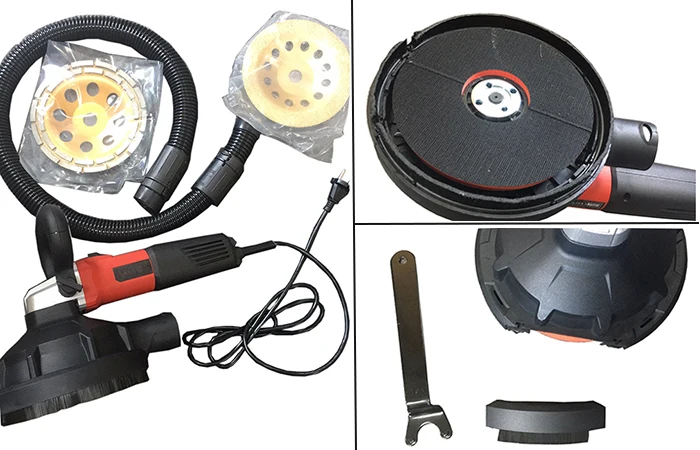 | Accessories of Concrete Surfacing Grinder: | 1pc 180mm sanding pad 2pcs 180mm sanding papers 1pc 180mm sponge wheel 1pc lower Flange 1pc spaner 1pc soft tube |
