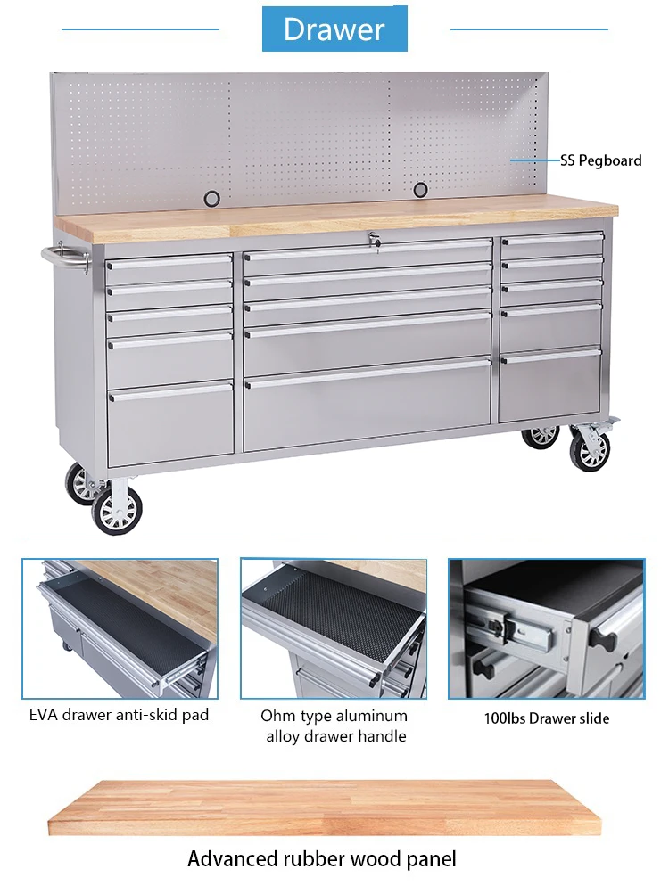 Stainless Steel Material and Cabinet,72" stainless steel tool chest Type 72" stainless steel tool chest