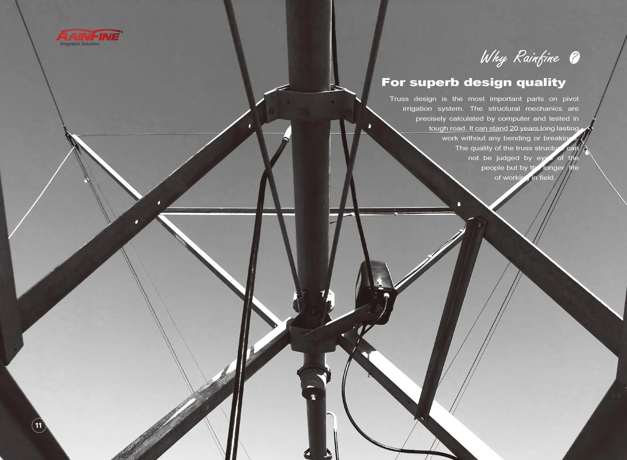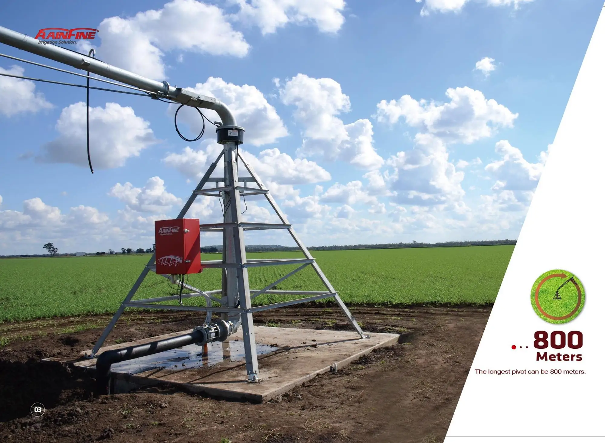 lThe Structure of Rainfine Pivot completely zinc-coated, powerful and very strong that provides work for many years.