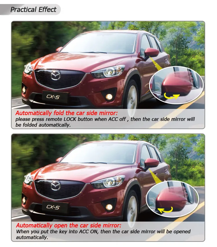 | Car Make | Specialized side mirror folding kit for MAZDA CX-5 | ||