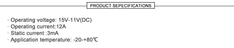 | Operating current: | 12A; | Voltage: | DC 12V; |
