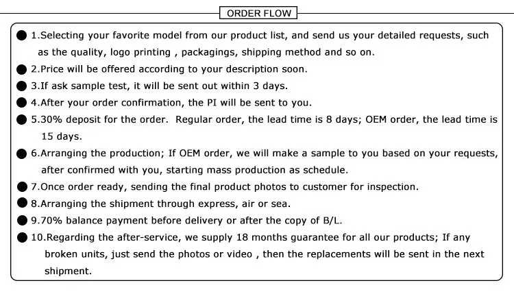 | Warranty | a)18 months warranty time | ||