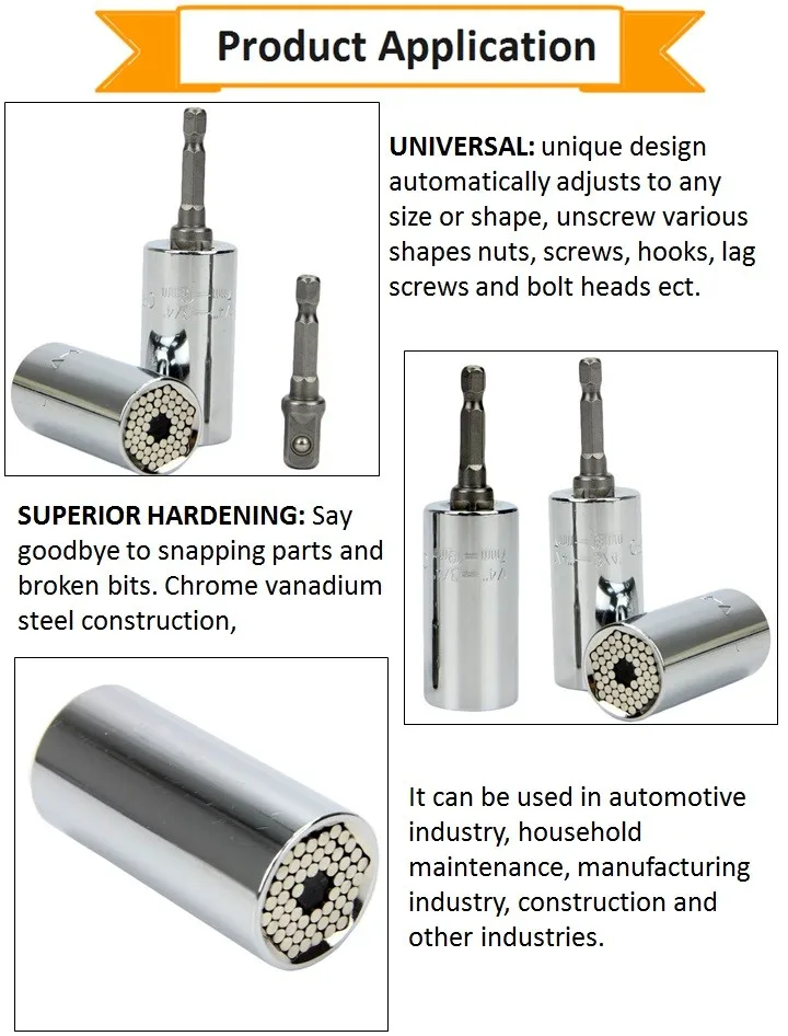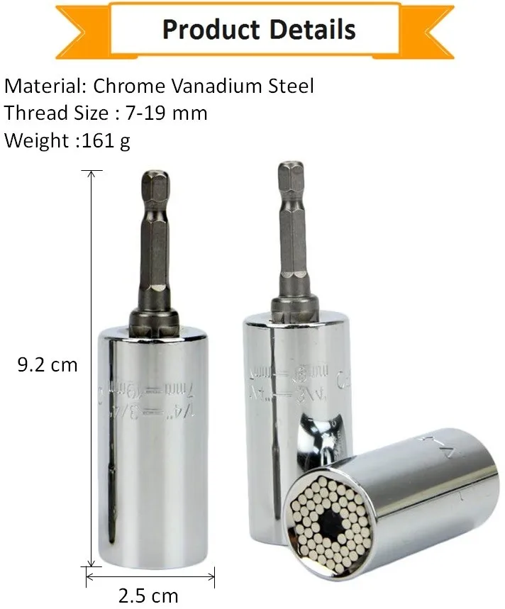 UNIVERSAL: unique design automatically adjusts to any size or shape, unscrew various shapes nuts, screws, hooks, lag screws and bolt heads ect.