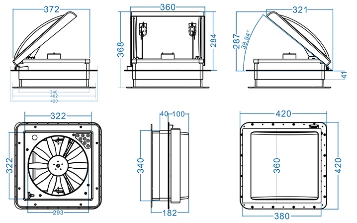 TYTXRV® roof vent fan is dedicated to high-class and smart RVs, with the functions of both supplying and exhausting air. The vent fan cover in gray black color allows the light to enter the van compartment. It brings your RV with light and fresh air.