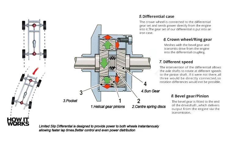 | Compose | Differential case,Differential flange part,Crown and pinion,Small limited slip differential,Bearings |