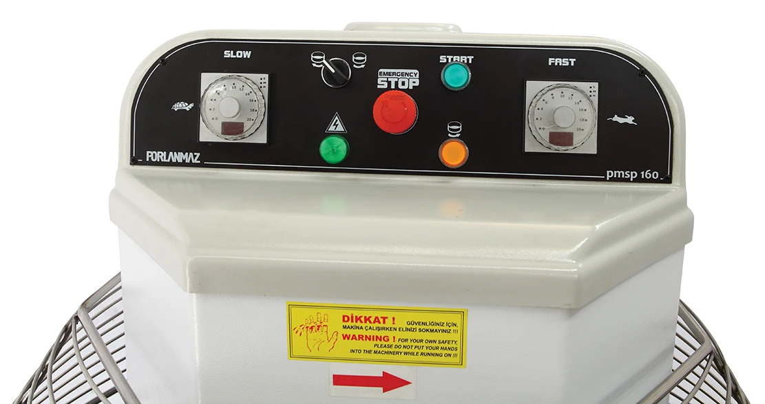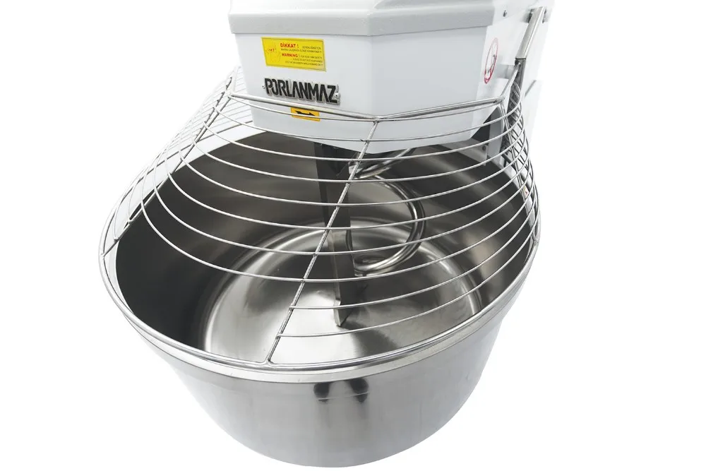 Spiral kneading machines are commonly preferred by bakery and pastry shops in order to shorten the usual kneading time. It enables to make very little flour to dough.This also provides more homogenate dough mixture and bigger volume bread. Machine works in manual and automatic cycle with two programmable timers. The bowl, spiral arm and bar are made of stainless steel. Reverse bowl rotation. Due to belt transmissions of main power the machine noise level is quite low. Mixer is mobile and there is a fixing device on the mixer.The emergency stop function and the security system on the cover are available. It can be moved easily thanks to its wheels.