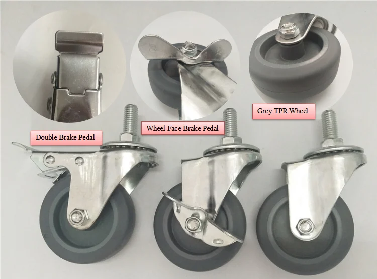 you can buy them with your choice such as swivel+side brake,swivel+double brake and so on the wheels are soft and non-marring wheels won't mark up or damage floors