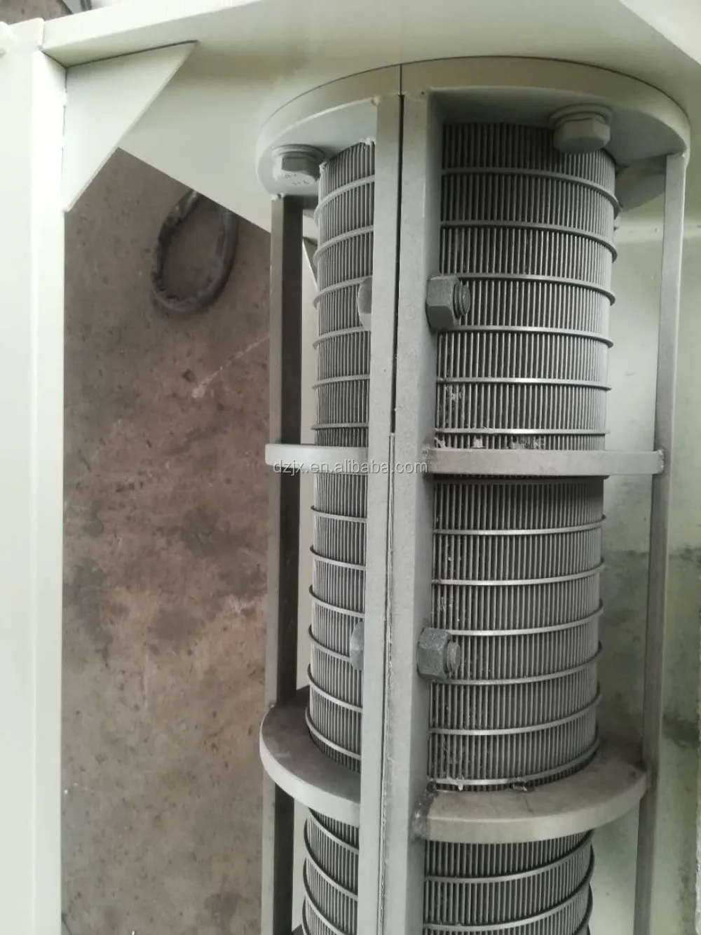 DZF-200 Screw press separator consists of shell, Filter cartridge, screw blade compression device, lever device,hydraulic system , pipe ,motors, Reducer, control cabinet and a bottom frame etc.