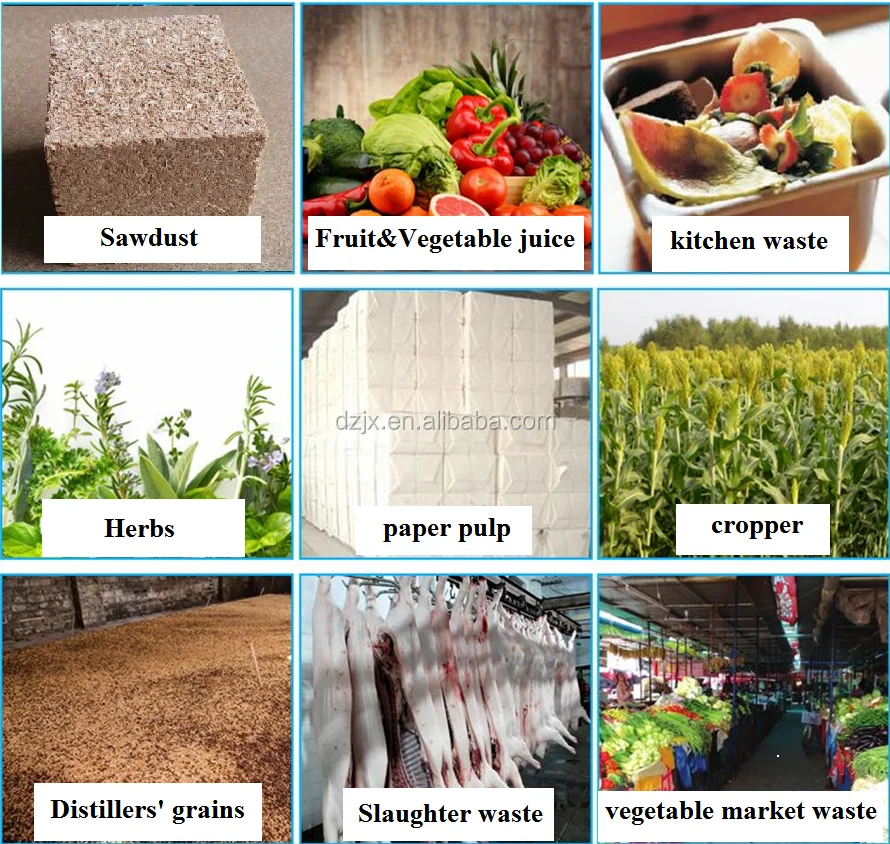 Food Industry: distillers' grains,carrot peel, potato residue,, seafood waste, bean sprouts residue, tobacco, beet residue,tea residue, vinegar lees, beer meal, coffee residue, Corn skin, fish surimi, shrimp residue,chicken residue etc.