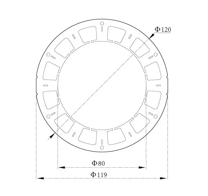 | Type | Outer diameter of stator | Inner diameter of stator | Tooth width | Number of slots | Poles | Multi-strands | Power | Speed |